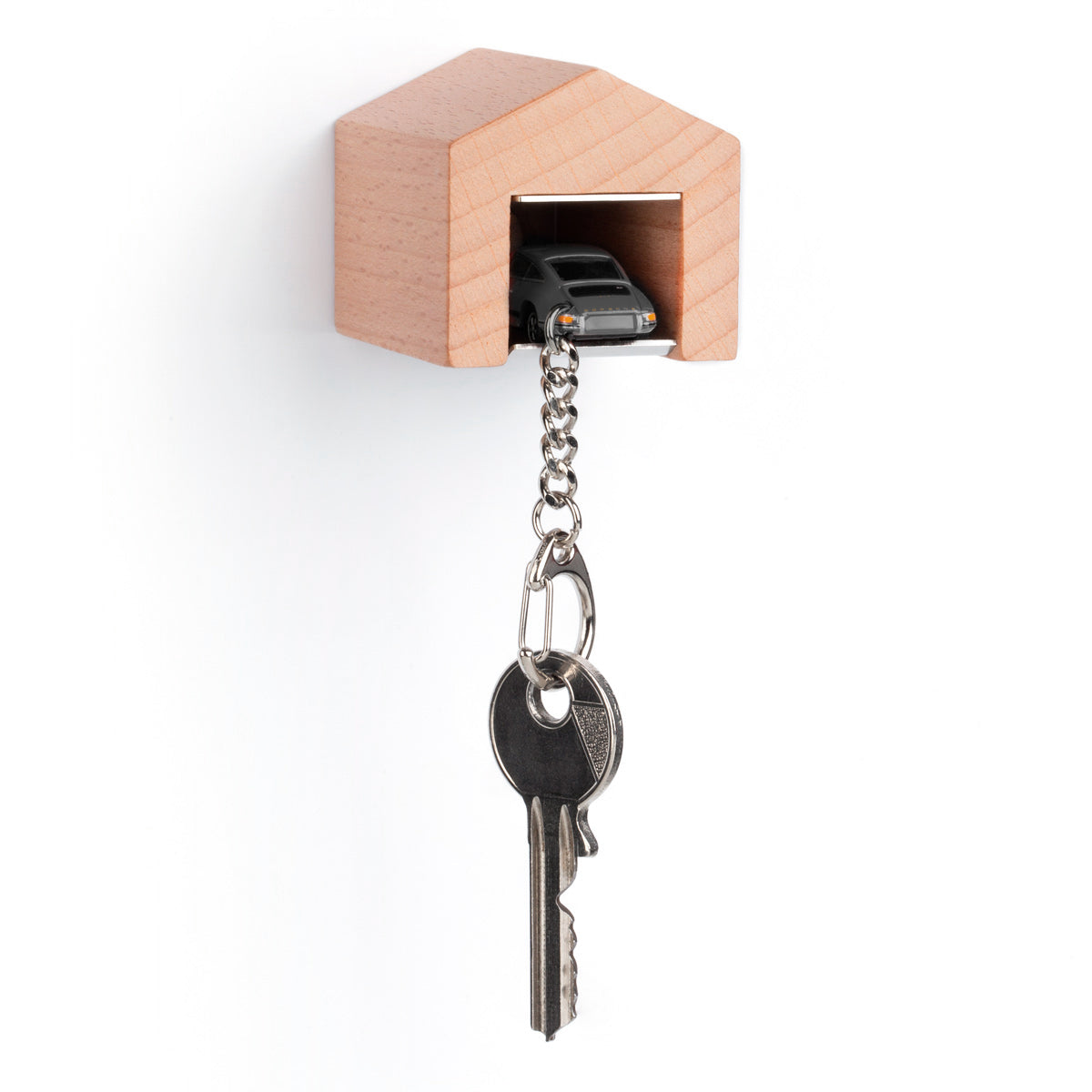 Auto: Metallspritzguss mit Kunststoffteilen / Schlüsselkette Metall vernickelt; 5,5 cm / Garage: Buche naturbelassen - Made in Germany by corpus delicti