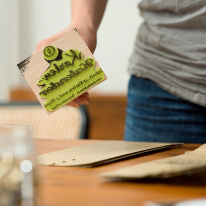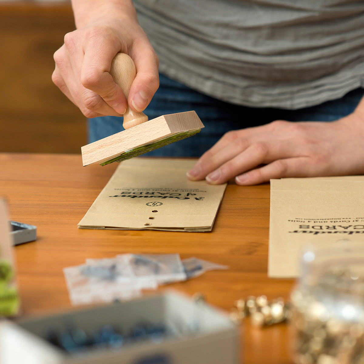 verpackt in einer handbestempelten Papiertüte