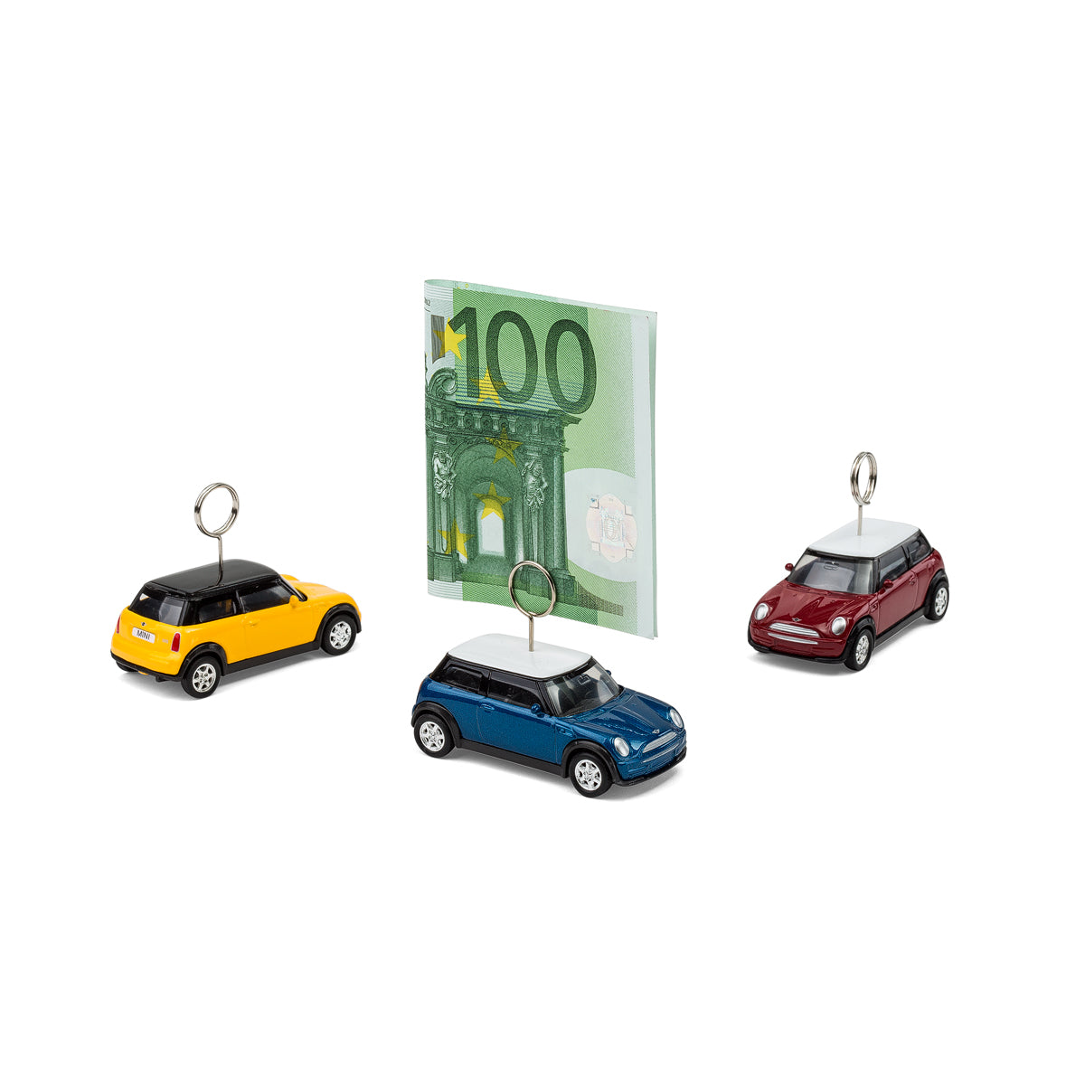 Der Mini verfügt über einen Rückzugmotor, der den mobilen Karten- und Fotohalter besonders rasant über den Schreibtisch flitzen lässt. Ideal auch für Gutscheine und Geldgeschenke. Nicht nur Männerherzen werden höher schlagen.