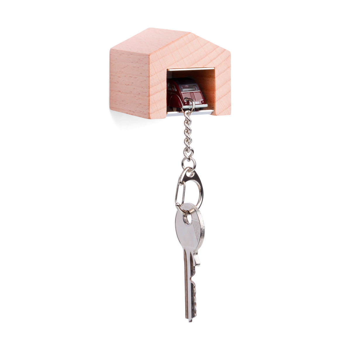 Auto: Metallspritzguss mit Kunststoffteilen / Schlüsselkette Metall vernickelt; 5,5 cm / Garage: Buche naturbelassen - Made in Germany by corpus delicti