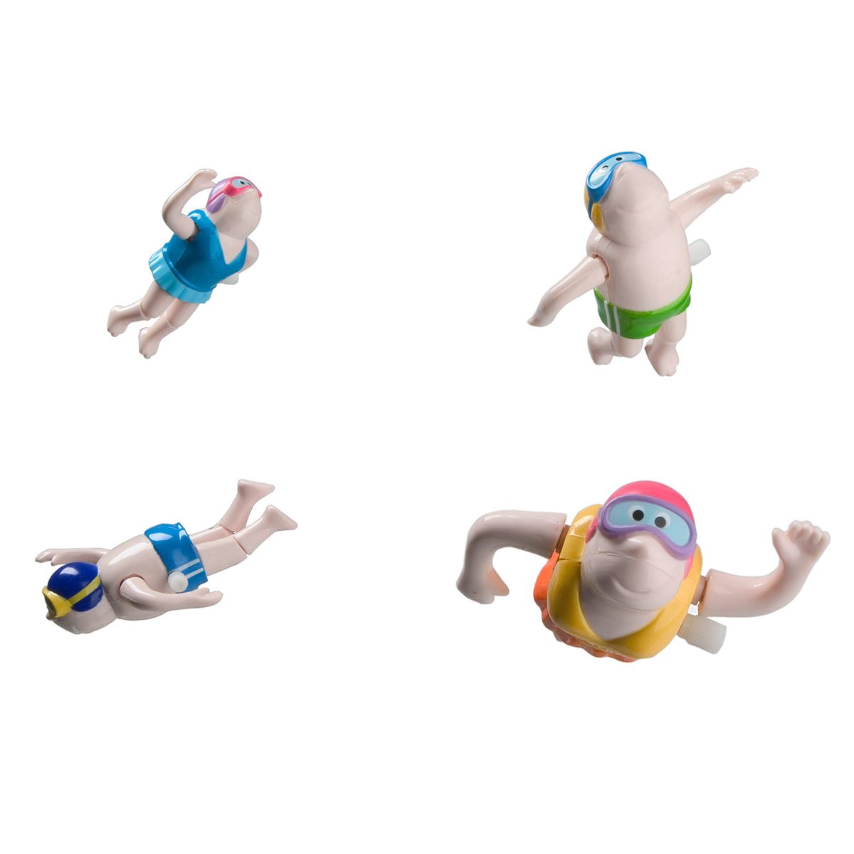 Diese putzigen Schwimmer sorgen für Action und gute Laune in der Badewanne und im Plantschbecken. Sie beherrschen die zwei Schwimmstile Kraulen und Schmetterling, die sich durch Drehen der Arme einstellen lassen. Die einzeln anzuwinkelnden Beine sorgen für die besondere Eleganz im Schaumbad oder sind perfekt für ein Wettschwimmen im Kinder-Pool.