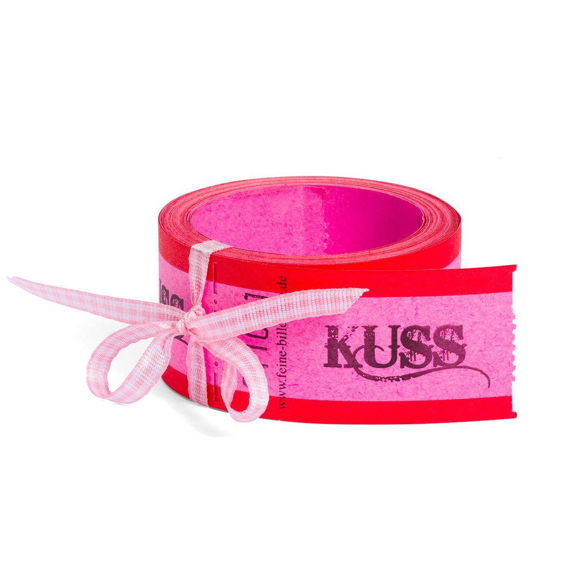 Die ultimative Wertmarke für alle Knutscher. Im total romantischen rosa-roten Design. Zum Verschenken, Verteilen oder zum ganz spontanen Selbereinlösen. Das farblich passende Vichy-Karo-Bändchen ist immer gratis dabei.